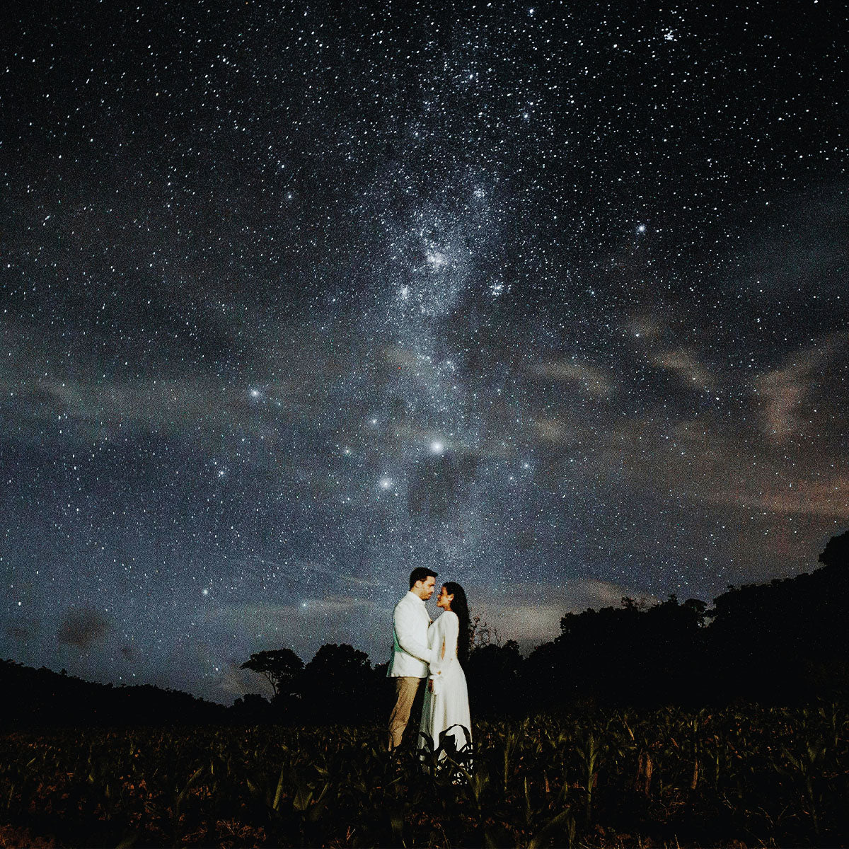 Enjoy a magical getaway with other couples for stargazing, night photography lessons, and photoshoots beneath the Milky Way, all while savoring gourmet food and drinks in a luxurious setting.