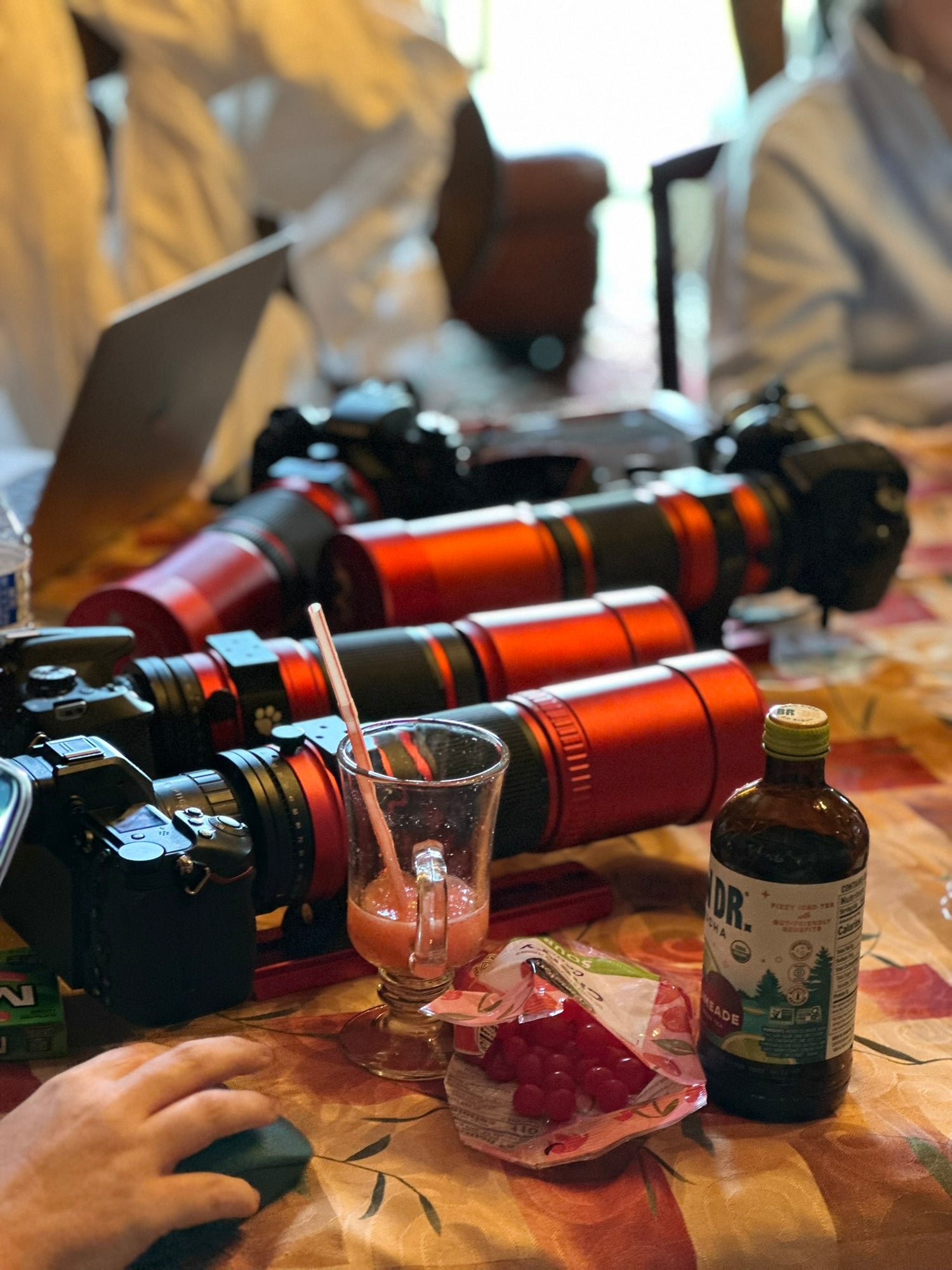We always start with a lazy morning. You'll be greeted with fresh coffee and a delicious brunch, then we'll head into our morning editing session, reviewing the data we took from our previous night. There's then time to relax and have a nap followed by a group dinner, then do our group training session and head out and shoot again.